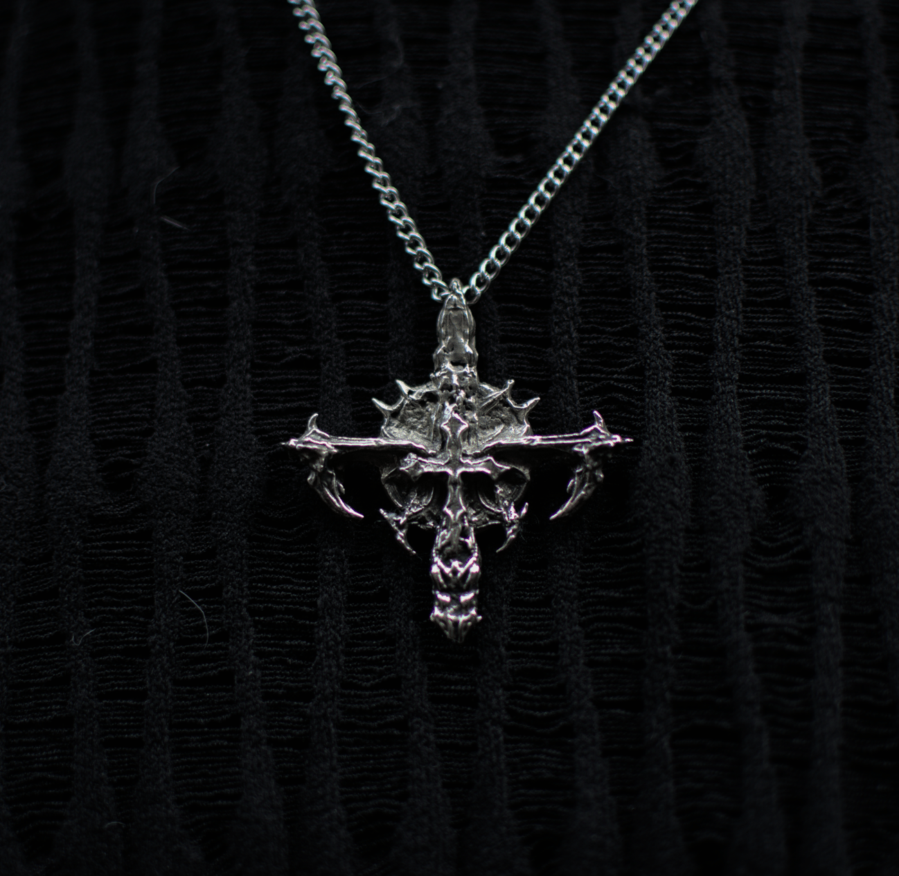 A cross meant to hold you when no one else can__cold silver, precise, built to stand when everything shifts.